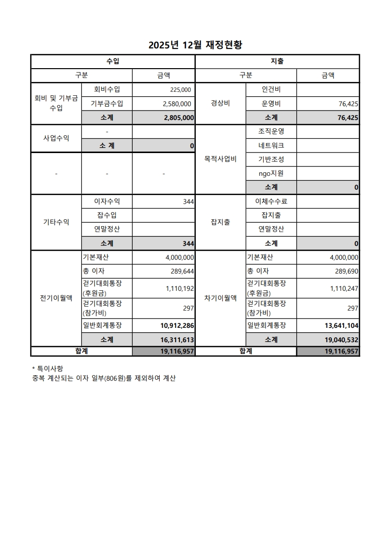 2025년 12월 재정현황