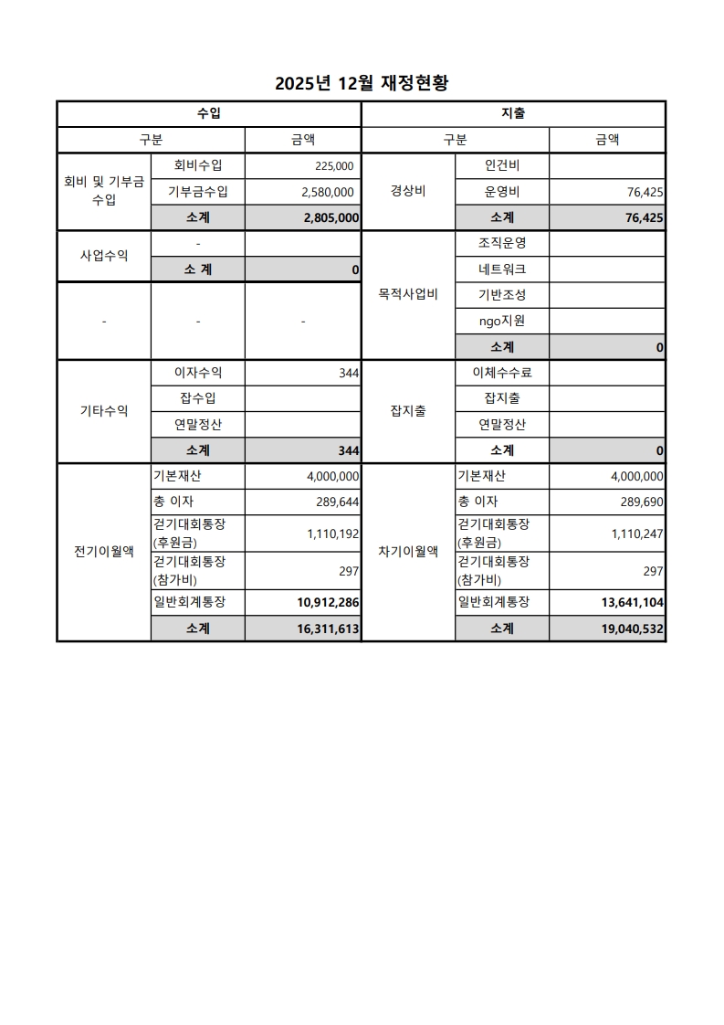 2025년 12월 재정현황