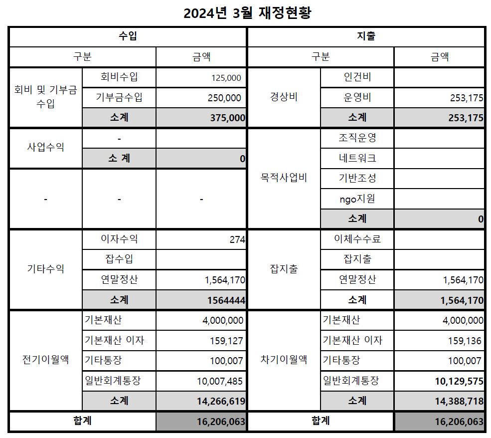 2023년 연간기부금 및 모금액 활용실적 명세서